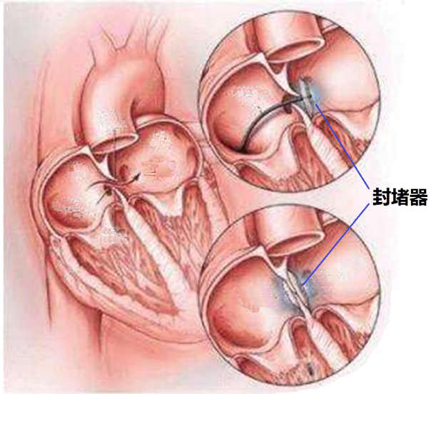PFO的治療方法有三:一是藥物治療,即長(zhǎng)期服用抗凝、抗血小板藥物;二是外科治療,即開胸手術(shù)方法關(guān)閉卵圓孔,手術(shù)創(chuàng)傷大、并發(fā)癥多;三是介入治療,即經(jīng)導(dǎo)管行PFO封堵術(shù),夾閉卵圓孔。介入封堵術(shù)是一種在局麻下進(jìn)行的微創(chuàng)手術(shù),其原理是通過(guò)大腿根部的股靜脈將一根導(dǎo)管送入右心房,穿過(guò)未閉卵圓孔至左心房,釋放專用封堵器,進(jìn)而關(guān)閉卵圓孔以達(dá)到根治的目的(圖5)。PFO介入封堵術(shù),治療技術(shù)成熟,成功率高,創(chuàng)傷小,無(wú)開胸手術(shù)、體外循環(huán)等痛苦,并發(fā)癥少,患者痛苦小、恢復(fù)快、易于接受,一般術(shù)后12~24小時(shí)就可以下床活動(dòng)。與前兩種治療方法相比,介入封堵術(shù)已經(jīng)越來(lái)越被廣大醫(yī)患人員推崇為PFO治療方法。