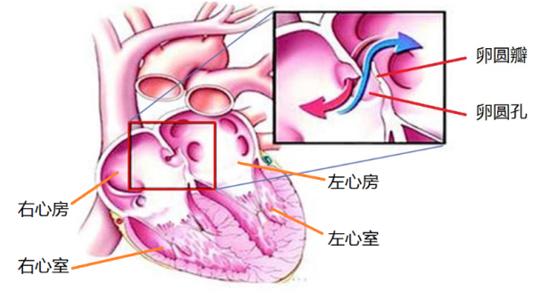 圖1 心臟的四個(gè)腔室及卵圓孔