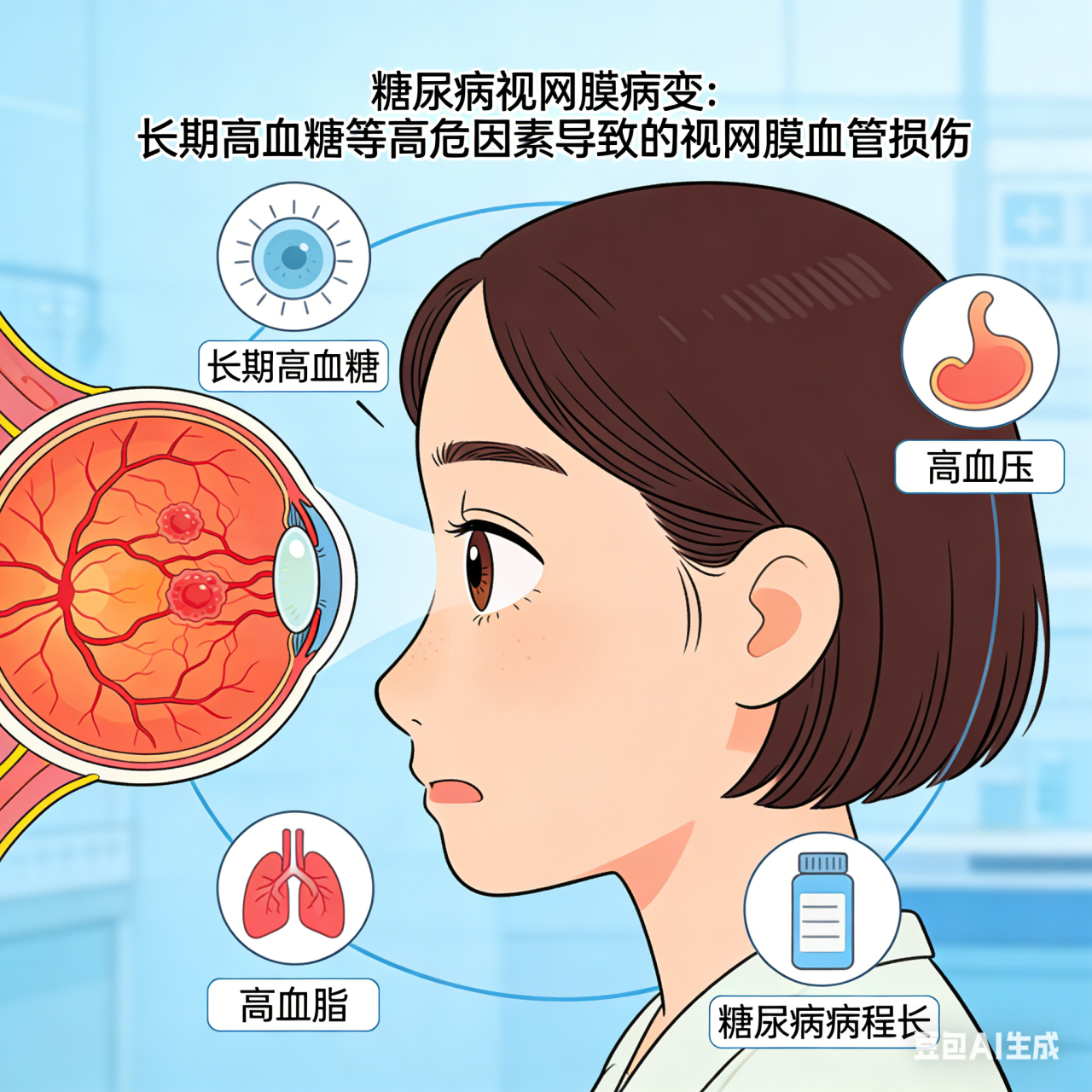 1.糖尿病病程:病程越長,風(fēng)險(xiǎn)越高,病程10年以上患病率顯著增加。