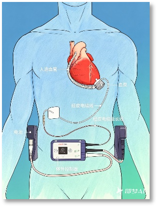 那么類比于此,當(dāng)人體心臟動(dòng)力嚴(yán)重不足時(shí),也能通過植入“泵”來維持血流穩(wěn)定、保障器官功能,這便是我們俗稱的“人工心臟”——心室輔助裝置(VAD)。