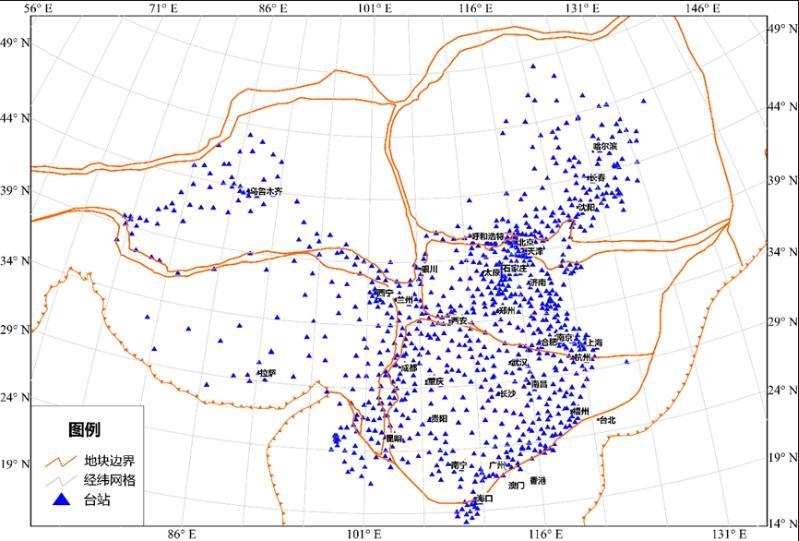 圖1 監(jiān)測站點分布圖(圖片源自中國地震局地球物理研究所)