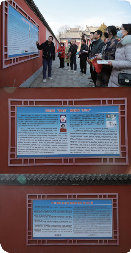 二是推進宗教場所宣傳。指導寶雞市針對“法輪功”邪教組織打著佛教幌子拉攏誘騙群眾的情況,在鳳翔區(qū)凈慧寺中院廣場四周墻壁上懸掛了7面大型系列宣傳板,使宗教界人士和廣大信眾提高反邪教意識。