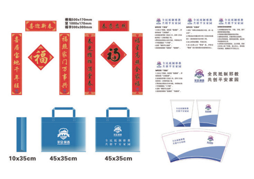 ▲反邪教宣傳實物——紙杯、手提袋、對聯(lián)