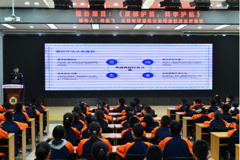 太原市晉源區(qū)公安局金勝派出所民警以《反邪護(hù)苗,科學(xué)護(hù)航》為題,開展了一堂生動的法治教育課。他圍繞“法律是什么”“生活與法律”“不良行為的定義與后果”等內(nèi)容,結(jié)合真實案例剖析青少年常見不良行為及其法律風(fēng)險,引導(dǎo)同學(xué)們樹立行為邊界意識,自覺抵制誘惑,做遵紀(jì)守法的好少年。尚志飛還特別強(qiáng)調(diào)了邪教的非法組織本質(zhì),提醒同學(xué)們遇到可疑情況及時向家長、老師或警方求助。